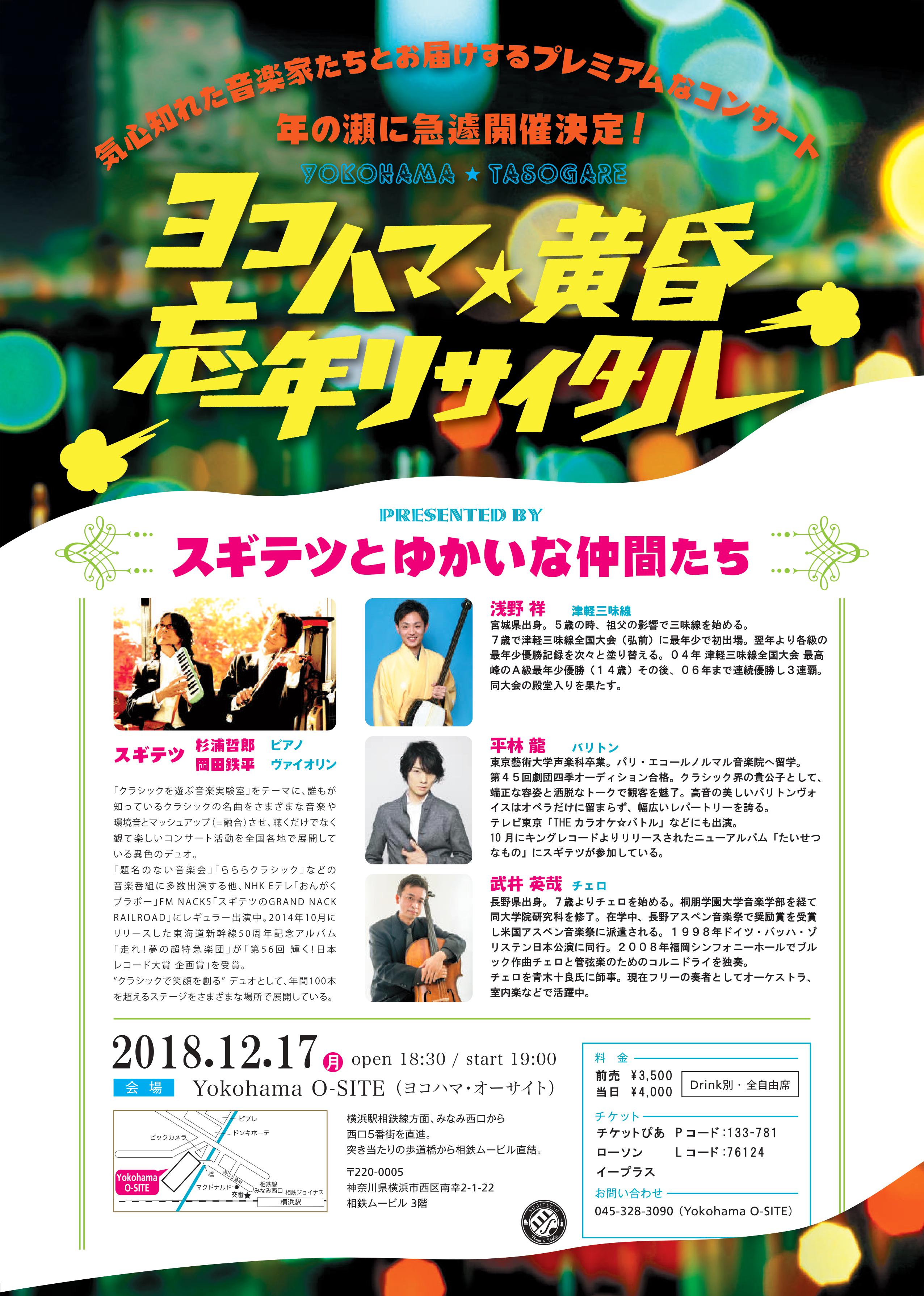 | 公演名 | ヨコハマ・黄昏・忘年リサイタル 2018 presented by スギテツとゆかいな仲間たち |