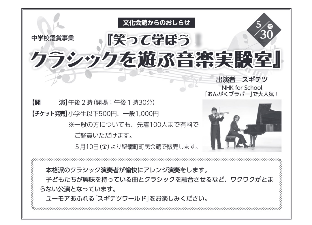 中学校鑑賞事業の公演ですが、一般の方も入場が可能となっています。